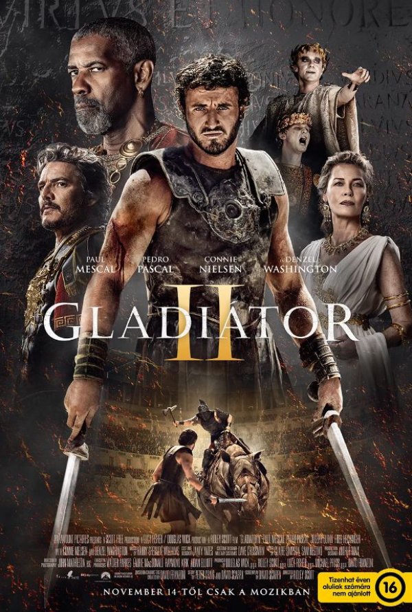 A legendás rendező, Ridley Scott a Gladiátor II-vel folytatja a hatalom, ármány és bosszú történetét az ókori Róma kulisszái között. Évekkel azután, hogy tanúja volt annak, hogy Maximus, az ünnepelt hős elesett nagybátyja keze által, Lucius (Paul Mescal) kénytelen visszatérni a Colosseumba, miután otthonát meghódították a zsarnok császárok, akik most vasmarokkal fogják Rómát. Szívében düh tombol, de a birodalom jövője a tét, így Luciusnak a múltjából kell erőt és tisztességet merítenie, hogy elhozza Róma népének a város egykori dicsőségét…